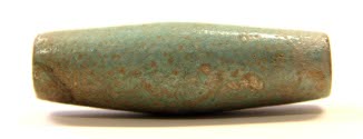 DescriptionPierced cylindrical object. Tapers from middle to both ends. Glazed clay in turquoise color.On View