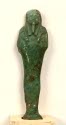 DescriptionUshabti with crossed arms, beard, molded details standing on platform with plinth; green glaze.On View