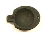 DescriptionSlate carved into a hollow palette; abstract turtle shape. Upper surface is rounded with a center ridge. Squared - off extension for hand at one end, with groove at the front. Hole drilled through "neck" and at opposite end of the body.On View