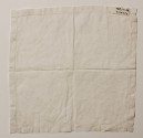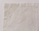 DescriptionWhite cotton hemstitched border with white satin-stitch design in one corner.Found in pocket of black cape 1967.24.4 C-3227 7/88 by mjm