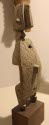 DescriptionDoor lock carved with geometric surface designs, abstract shape of body, head with ears and nose, and legs; square knob at middle; two holes; back carved out for bolt; two metal pins still intactOn View