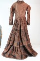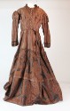 DescriptionBrown taffeta wedding dress, 1853.On View