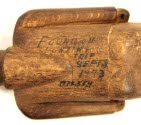 DescriptionCarved wood; hat or hair with top knot; hooded parka is pointed front and back; boots and leggingsOn View