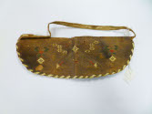 DescriptionDark seal skin pouch. Embroidered. Ivory fob.On View