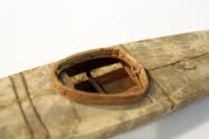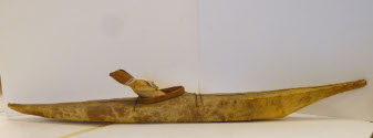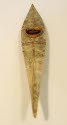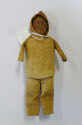 DescriptionInuit doll. Well-made. The face and body are carved of wood. The body itself has no feet or arms. He is dressed with pants and a parka with a pointed hood. His clothes are sewn with a plant fiber twine.On View
