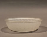 DescriptionCover is a swan with leaves around its base. Dish is covered with geometric motifs. Oval shape. Reproduction.On View