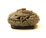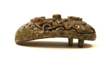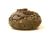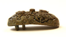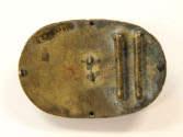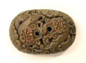 DescriptionOpen-faced hollow metal with two-lions facing. Oval shaped.On View