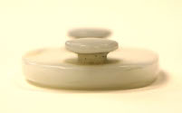 DescriptionWhite jade, plain, unblemished, squared oval. Two knobs on back.