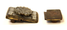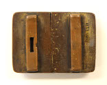 DescriptionPlain brass rectangular part of buckle. Fits onto 1975.83.19.