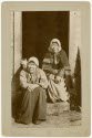 DescriptionTwo women and a cat sitting on a doorstep.On View