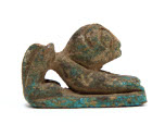 DescriptionTurquoise faience of animal (cat?) with front legs on ground, back haunches up.On View