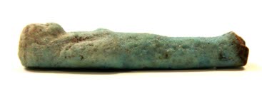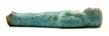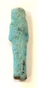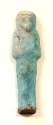 DescriptionIndistinct features, remains of black paint on head; dull finish; blue-green glaze, with worn areas now roughly textured, white; feet missing
