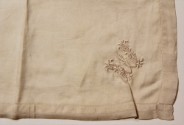 DescriptionMan's silk handerkerchief with embroidered initial "W", (for Woodruff) in one corner. Embroidered initial is approx. 3 cm high and 2.5 to 3 cm wide. Handerkerchief and embroidery floss are both off-white. Borde (hem) is approx. 1.3 cm wide.On View
