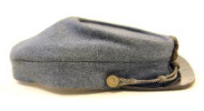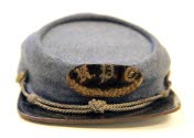 DescriptionFrom uniform of Rock Point Institute. Grey material, gold buttons on both sides of hat. Gold yarn, twisted and knotted, loops around buttons. Lined with black silk-like fabric, stitched around the sides with yellow-orange thread. An insignia on the front with initials: RPI.On View