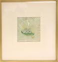 DescriptionTwo rabbits sitting on a little tuft of green grass, looking at a yellow butterfly. The scene is bounded by a soft white circle border.On View
