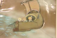 DescriptionThree baby boys fishing from a ship made of a wooden shoe