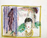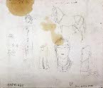 DescriptionBust of woman in foreground with figures and an animal in background. Pencil sketches on verso.On View