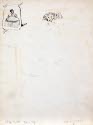 DescriptionRecto: Woman wearing an ornate gown, a feather in her hair, and carrying a handkerchief. There is a small sketch of a woman at upper left. Verso: two small studies of the woman