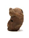 DescriptionClay head with gouged eyes and mouth and headband with two circular ornaments over the eyes.On View