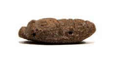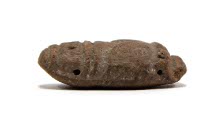 DescriptionSmall clay object (beetle) with incised design; Three holes are drilled through the object; One through the wider end, two through width of body; Adorno, probably from a Teotihuacan incensario, a glyphOn View