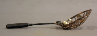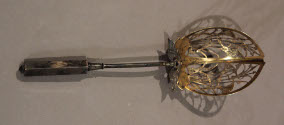 DescriptionOpenwork gold bowl, handle same as 1938.13.5. Monogrammed "M.H." with Gorham Hallmark: lion, anchor, and old English G.On View