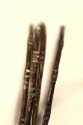 DescriptionOne of four bronze late 4th century bracelets, meauring 7 cm in circumference. One is broken on one spot. According to the Giles Clark's"The Roman Cemetery at Lankills II" of the Winchester study series (Vol. 3 Oxford: Claredon Press, 1979) they are all class D types: a strip bracelet with invariable D-shapes or a rectangle cross section in a continous repetitive pattern.On View