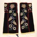 DescriptionPair of leggings that fasten below the knee. Black velvet with colored beadwork down the sides and around the bottoms. Lined with yellow cotton and bound with red wool.On View